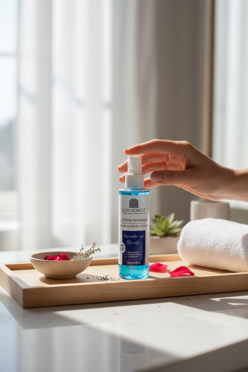 - Eau de Rose pure : Hydratante et apaisante, elle tonifie et rafraîchit la peau